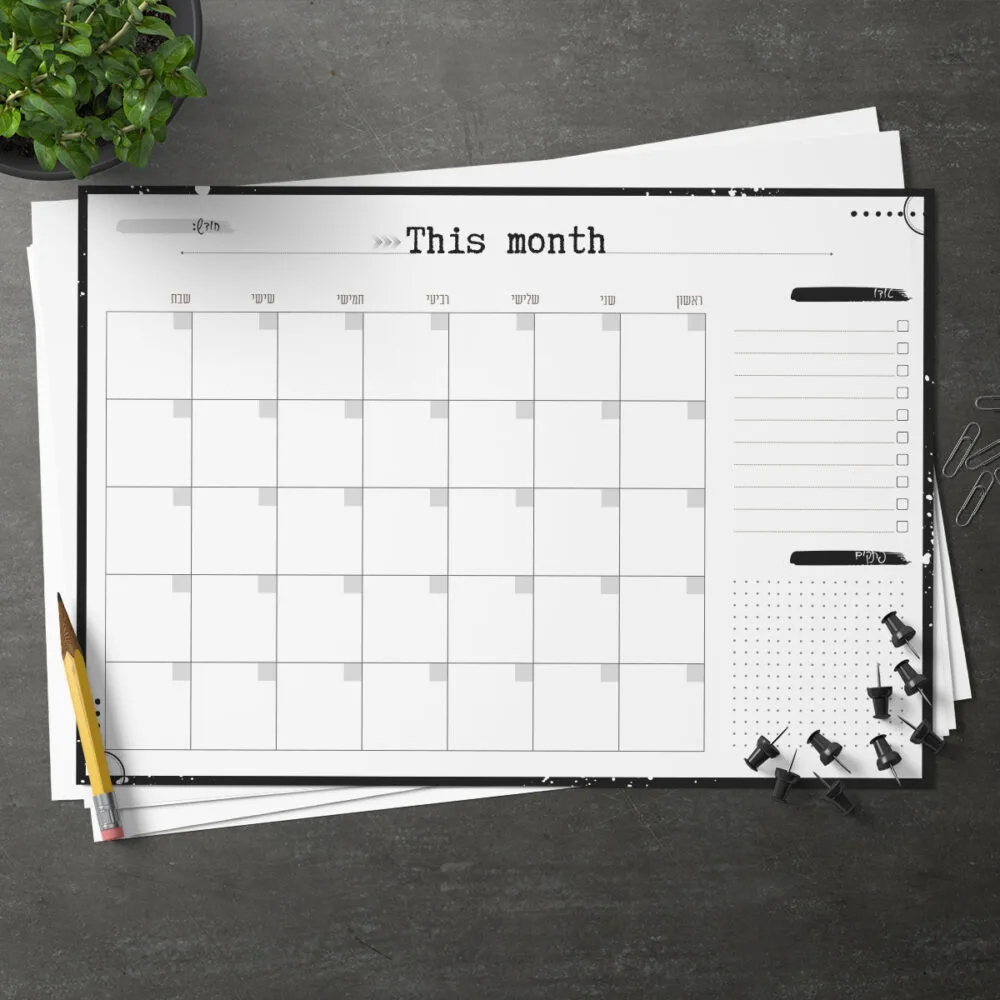 מיד כשתסיימי את ההזמנה, יישלח אליך למייל הלוח לתכנון חודשי כקובץ PDF בפורמט A4 להורדה מיידית,